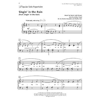 Alfred's Group Piano for Adults, Popular Music Book 2 is designed to be used in conjunction with Alfred's Group Piano for Adults, Book 2. Included in the book are popular pieces to perform and lead sheets to harmonize. The familiar popular pieces were chosen to appeal to non-keyboard music majors with little or no keyboard experience. The pieces are sure to bring hours of enjoyment while reinforcing important musical concepts. Popular Solo Repertoire: Anything Goes (from Anything Goes) * At Last * Breakaway * Bridge over Troubled Water * California, Here I Come * Can You Feel the Love Tonight (from Walt Disney's The Lion King) * Colors of the Wind (from Walt Disney's Pocahontas) * Don't Stop Believin' * Downton Abbey Theme (from Downton Abbey) * How High the Moon * Mia & Sebastian's Theme (from La La Land) * Rhapsody in Blue * Singin' in the Rain (from Singin' in the Rain) * The Sound of Silence * Take Five * Under the Sea (from Walt Disney's The Little Mermaid) * You'll Be Back (from the Broadway musical Hamilton). Lead Sheet Harmonizations: All About That Bass * Aquarius (from Hair) * The Ballad of Gilligan's Island (from Gilligan's Island) * Blowin' in the Wind * Fascinating Rhythm * Fly Me to the Moon * It Was a Very Good Year * Love Story (Where Do I Begin) * Misty * Open Arms * Stairway to Heaven * Star Dust * Take Me Home, Country Roads * Try to Remember (from The Fantasticks) * Weekend in New England * You Raise Me Up.